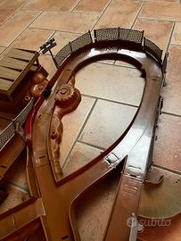 Pista “Cars circuito Thunder Hollow”, tenuta bene, funzionante. Mancano scatola e istruzioni, ma si monta facilmente (ci sono le lettere sotto i pezzi). Ha bisogno delle pile (non incluse).