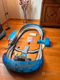 Pista cars 3 ulilizzata una solo volta, completa dí macchinina Saetta e adesivi ancora parzialmente da applicare. Condizioni pari al nuovo ad eccezione di un piccolo pezzo della pista, vedi ultime due foto, leggermente morsicato dal ns cucciolo di cane, che comunque non compromette il gioco, infatti la pista funziona perfettamente.