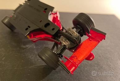 La Ferrari ha una riparazione sull’alettone ( la si vede nelle foto). La riparazione e’ visibile solo capovolgendo la macchinina, in posizione normale non e’ visibile (vedi foto).