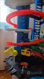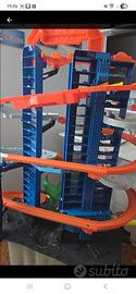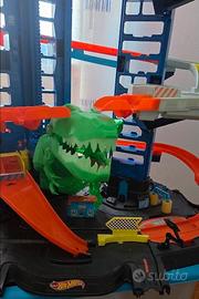 Pista/garage Hot wheels, in ottime condizioni. Pista da corsa multilivello, attacco T-Rex e spazio per oltre 100 macchinine, altezza: 90 cm.
