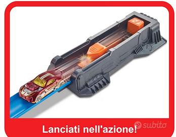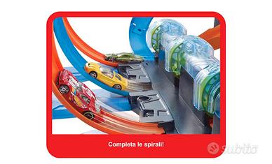 Pista Hot Wheels Schianti Rotanti con Propulsori Motorizzati, Giocattolo per Bambini 5+ Anni, FTB65 + Track Builder Unlimited Doppio Loop, Loop con 2 Opzioni di Uscita