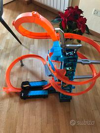 Pista hotweels, con lancio macchinina automatica a batterie. Funzionante. Vendo con tutte le macchinine della foto ed altre. 50 circa.