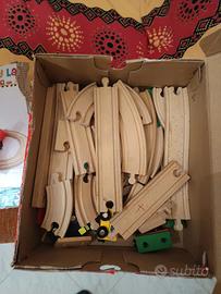 Pista in legno componibile, compresa di tutti i pezzi come in foto. C'è anche qualche binario in più. Non ho più la scatola originale