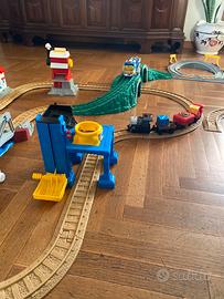 Grande pista con 3 treni e due telecomandi con vari accessori Praticameb nuovo mintato una volta Vebdo per inutilizzo e