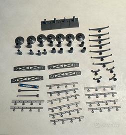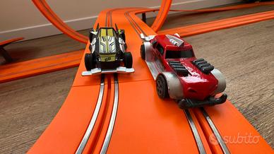 Pista macchine Hot wheels modello GG00693 Pista con 2 giri della morte e due sopraelevate ! In dotazione ci sono, oltre a tutti i pezzi curvi e rettilinei per comporre il tracciato: - due auto con led luminosi funzionanti come fari; - due telecomandi con “modalità turbo” per sfidare gli amici; - alimentatore DC (possibile funzionamento anche con pile stilo, non in dotazione); - manuale di istruzioni per assemblaggio; - scatola in plastica blu in regalo trasparente per riporre comodamente la pista dopo l’uso. - Dimensioni montata: circa 80 × 60 × 10 cm (Lunghezza × Larghezza × Altezza) Condizioni PERFETTE !!!!!