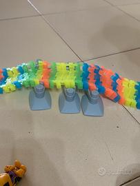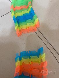 La pista è formata da tanti piccolo componenti colorati che si possono attaccare/staccare a proprio piacimento e facilmente snodabile.