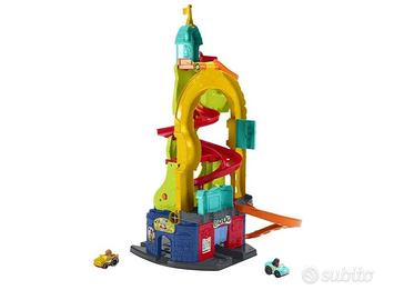 Trasforma il playset in un grattacielo con rampa verticale a spirale, alta quasi 90 cm, per un gioco di corse che sfida la gravità