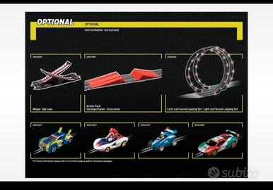 Il contagiri incluso garantisce correttezza in gara e offre sempre nuove sfide. Oltre ai rettilinei e alle curve, gli elementi di gioco inclusi come l'incrocio, il sorvolo e un looping snervante garantiscono un divertimento unico.