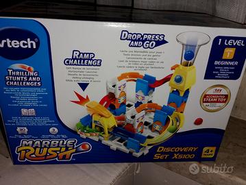Pista per biglie con 30 pezzi, 3 biglie incluse,lanciatore e area di lancio, tanti passaggi segreti e bivii.