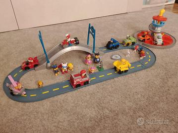Vendesi bellissima pista smontabile Paw Patrol con lanciatore. Comprese anche le macchinine di Chase, Marshall, Rocky, Zuma, Skye, Rubble e l'introvabile Everest. Aggiungo anche personaggi vari, tra cui Ryder.