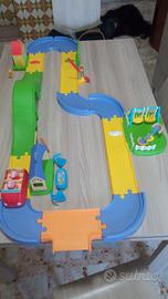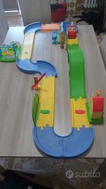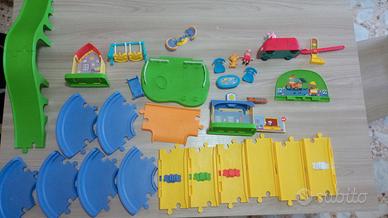 Per inutilizzo vendo la pista di Peppa Town originale HASBRO. La pista è composta da diversi pezzi e si può montare in varie forme. Ha 4 pezzi speciali su cui inserire le situazioni (scuola, casa, parco, lavori) e quando l'auto passa sopra emette dei suoni specifici per la storia. L'auto va a pile (incluse) e suona anche da sola il motivetto di Peppa Pig o il clacson. Come personaggi c'è la mamma di Peppa Pig all'interno dell'auto (non estraibile) e Peppa Pig che puo essere seduta sulle varie stazioni (automobile, altalena, sedia, eccetera). C'è un semaforo con sbarra che si può inserire in qualsiasi punto e il peluche di Peppa. Altri accessori come il letto, il cavalletto della scuola e o giochi del parco. PREZZO NON TRATTABILE