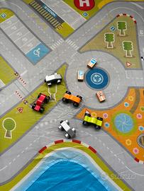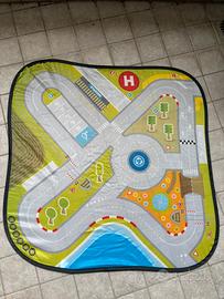 Pista per macchinine Eurekakids, pieghevole, richiudibile in comoda borsetta con manici. Dimensioni cm 100x100 ca.