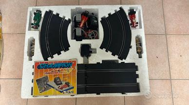 Pista Poljstil Anni 80 con: - 3 auto formula 1 (2 Ferrari, 1 Benetton) - Set Champion per ricarica Carburante -Scatola originale ed accessori completi Date le dimensioni sarebbe preferibile il ritiro a mano, scrivere per maggiori informazioni!