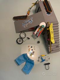 Vendo pista skateboard con 4 skate, 2 monopattini, pista smontabile e diversi accessori.