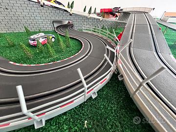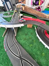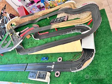 Pista slot carrera. Compreso tutto quello che vedete in foto, in piu molti altri pezzi, tipo due chican che simula il ghiaccio, ruota con giro della morte, trampolino etc…. Come vedete in foto, presenta pezzi che simulano terreno sconnesso e chican. Macchine in dotazione come in foto. In piu presenta la funzione che si puo girare in ambedue le direzioni.