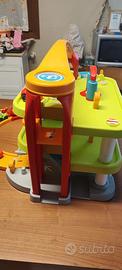 Vendo pista per macchinine Smoby usata ma in ottime condizioni, completa di set di mezzi di trasporto: auto, camion, elicottero e altri veicoli inclusi.