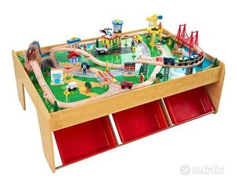 Pista treni KidKraft con tavolo e contenitori