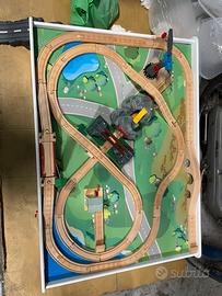Vendo per inutilizzo una splendida pista di trenini con il suo tavolo da gioco.diversi treni in legno tanti altri elettrici con molti accessori.