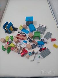 vendo pista treno in legno con accessori in ottime condizioni pari al nuovo usata solo 2 volte. sono presenti tutti I pezzi che ci sono alle foto. la vendo perché non la usa più