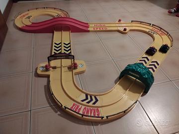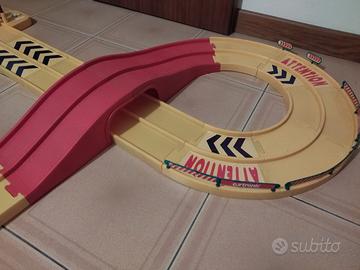LE CARREGGIATE DELLA PISTA SONO LARGHE 7cm L UNA , CI SI PUO' GIOCARE ANCHE FARE DELLE GARE CON CLASSICHE MACCHININE HOT WHELLS , MAJORETTE ...... DA LANCIARE , è MOLTO DIVERTENTE .