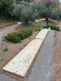 Vendo set completo di 10 piste da minigolf professionali con fondo rigido, ideali per realizzare o ampliare un percorso di minigolf in contesti turistici, ricettivi o ricreativi. Le piste sono robuste e stabili, pensate per uso esterno, e presentano ostacoli integrati (curve, rampe, onde, piramidi, elementi circolari) che rendono il gioco vario e divertente