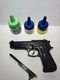 Pistola giocattolo a molla con pallini in plastica. distanza di tiro 5 metri.