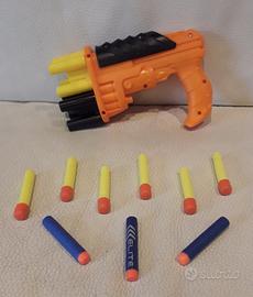 Pistola Spara Dardi in condizioni perfette e praticamente mai giocata. La pistola è composta da due caricatori girevoli che possono contenere ciascuno 4 dardi, per un totale di 8. Inoltre è presente un un'ulteriore dardo di riserva. Gioco molto divertente e perfettamente funzionante. Ho tanti altri prodotti e giochi per bambini da vendere eventualmente anche in lotto. Guarda anche tutti gli altri miei annunci digitando annunci Markone24. Consegno a mano in zona Rimini o spedisco in tutta Italia.