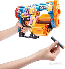 POTENZA DI FUOCO: La pistola X-Shot Skins Dread raddoppia il divertimento, ma anche i guai! Colpisci vari bersagli fino a 27 metri di distanza.