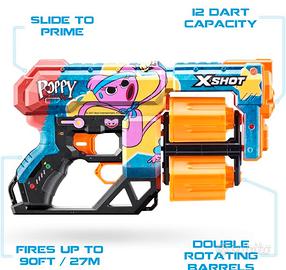 IL PACCHETTO COMPRENDE: 1 Pistola X-Shot Dread - Poppy Playtime, 12 Dardi in gommapiuma con tecnologia a sacca d'aria