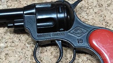 Coppia di pistole giocattolo da cowboy in metallo e plastica con fondine in finta pelle