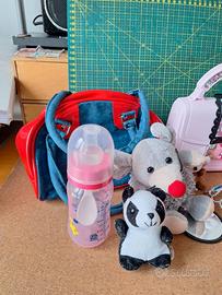 Insieme di più di 15 giochi per bambina, con borsette, trucchi, peluche, gioielli, biberon…..; ubicazione: San Donato Milanese (MI)