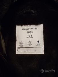 Piumino bambina Abercrombie anni 7/8 lungo al ginocchio con interno in pelliccia, completo di cappuccio e tasche. Chiusura con bottoni e zip colore marrone molto scuro quasi nero.