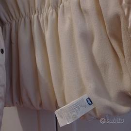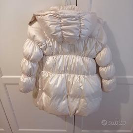 Piumino lungo 8 anni 128 cm , marca My CHICCO. colore panna lucido, chiusa zip e bottoni con cappuccio e tasche.