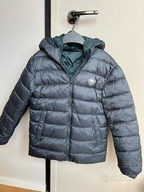 Vendo piumino bambino marca Hot Buttered con cappuccio, reversibile da una parte verde scuro e dall’altra grigio taglia 8 anni usato ma tenuto benissimo, ha solo il cursore della cerniera scolorito.