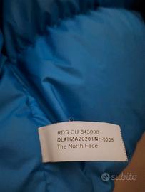 Piumino in VERA PIUMA The North Face BLU, taglia da BAMBINO XL, dovrebbe corrispondere ad una XS da Adulto.