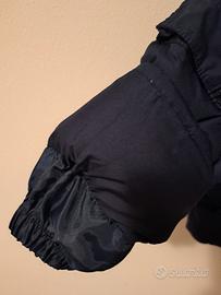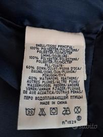 Piumino blu ottime condizioni taglia 3 anni con cappuccio richiudibile davanti alla bocca per maggiore protezione e manica interna con arricciatura antivento. imbottito con 60 % piuma d'oca e 40% sltre piume