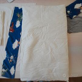 Coordinato per lettino comprensivo di: paracolpi con laccetti (lunghezza 190×45 cm altezza) - piumino (lunghezza 116×70 cm altezza) - cuscino (lunghezza 57×36 altezza) - con due federe - lenzuolo (larghezza 115×160 cm lunghezza) e un copri piumino (lunghezza 118×75 cm altezza)