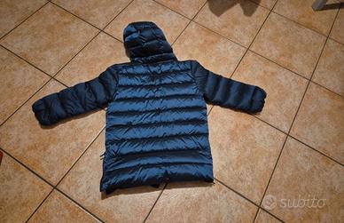 Giacca vera piuma (piumino d'anatra) marca Brums, nuovo con cartellino (visibile prezzo originale). Blu cangiante, taglia 6 anni 116 cm