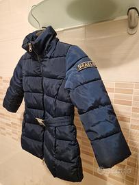 Piumino caldo avvolgente Maelie con cappuccio e cintura come nuovo in perfette condizioni colore bluette anni 3.