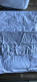 Vendo set piumino e copri piumino per lettino bambino con paracolpi abbinato tutto della marca Prénatal. La fantasia è bianca e grigia con delle stelline e un orsetto, adatto sia a maschi che femmine. Piumino e paracolpi appena lavati in lavanderia e chiusi in sacchetto ermetico.