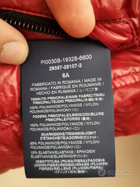 Il capo è originale e usato pochissimo, di colore rosso con cappuccio e tasche con zip. L'imbottitura è con vere piume d'oca.