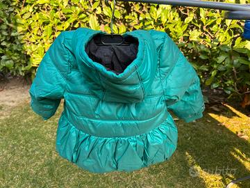 Piumino imbottito bambina taglia 2 anni, con cappuccio, zip e bottoni.