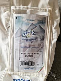 Piumino per lettino, marca Daunex, modello Tirolo Warm, misure 100x135, piumino d'oca bianco europeo, filling power 700, tessuto esterno in cotone.