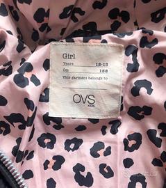 Piumino vita da bambina, grammatura grossa (non di quelli sottili). termico, impermeabile, nero con interno leopardato su sfondo rosa. 12-13 anni, cm 158. OVS Kids