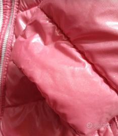 Piumino marchio original marines, con cappuccio, colore rosa effetto lucido glitterato, taglia 9-10 anni