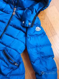 Piumino originale Moncler bambina taglia 4 anni, 104 cm, colore avio, con cappuccio staccabile,in ottime condizioni. Consegna a mano in zona.