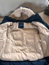 Vendo piumino Moncler da bambina età 5 anni. Indossato pochissimo, cappuccio con pelliccetta interna color panna