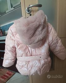 piumino imbottito lungo con cappuccio color rosa, taglia 3-4 anni indossato una sola volta.