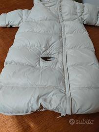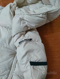 piumino neonato Woolrich con predisposizione per aggancio seggiolino auto senza spogliare o arricciare tutto. Cerniera laterale e sul fondo per sfilare agevolmente. colore panna.