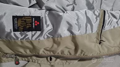 Piumino Peuterey Bambino taglia S (anni 8 /10) in vera piuma d'oca, in perfette condizioni, usato pochissimo, colore verde salvia / militare, con 4 tasche anteriori ed una tasca interna. Cappuccio staccabile con cerniera.